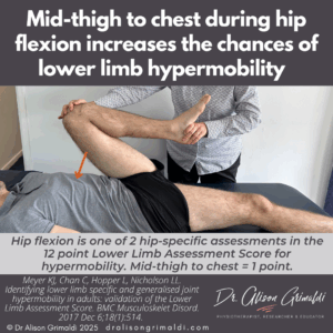 Hip flexion is one of 2 hip-specific assessments in the 12-point Lower Limb Assessment Score for hypermobility.